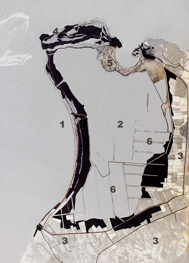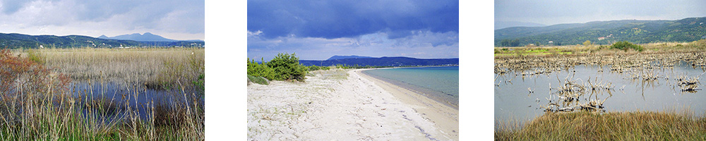 The content of this thesis was the support with architectural means of the diverse uses of land while preserving and upgrading of an ecological sensitive region. It is placed at the south-west edge of Peloponnisos, it is a salty marshy lake between the sea and the land.