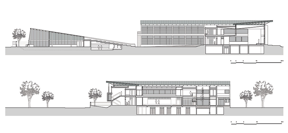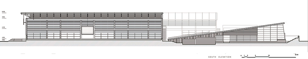 The greenhouse is the landmark of the school. It’s graded roof start solidly from the ground floor and  as it ascends it transforms into a light glass roof with metal structure. Its serves as an agricultural workshop.